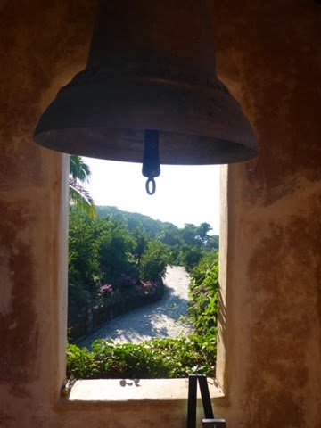 A shrub-lined path led the way to a tall security tower where a guard greeted us kindly and offered permission and directions to the lookout over the bay and the caldera beyond.